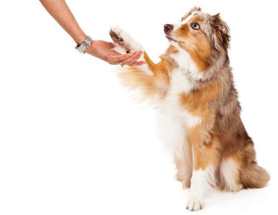 - Lift the dogs paw off of the ground and say the command of your choice. Use something such as " give me your paw", or "paw".